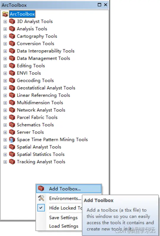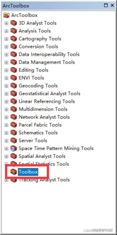 此时,在“ArcToolbox”中也可以看到自己刚刚建立的工具箱。