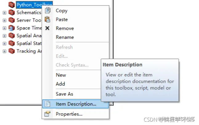 上述描述文本主要填写对这一工具箱的介绍即可。配置完毕描述文本后,我们在工具箱右键,并选择“Item Description”。