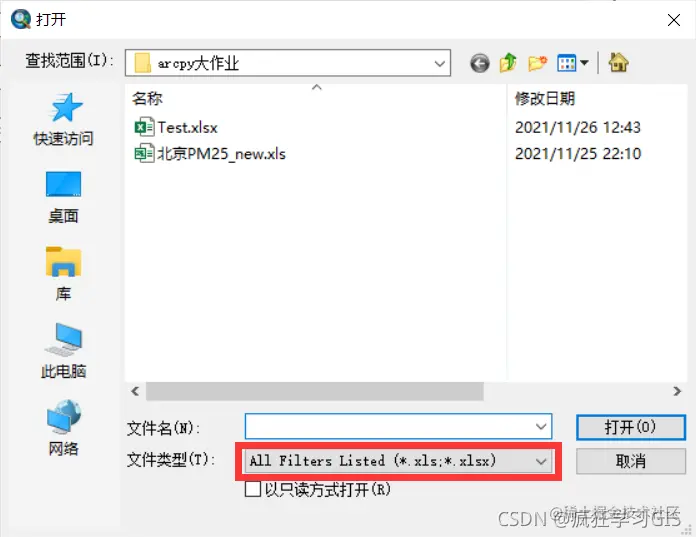可以看到,这里就仅支持选择.xls格式的文件。