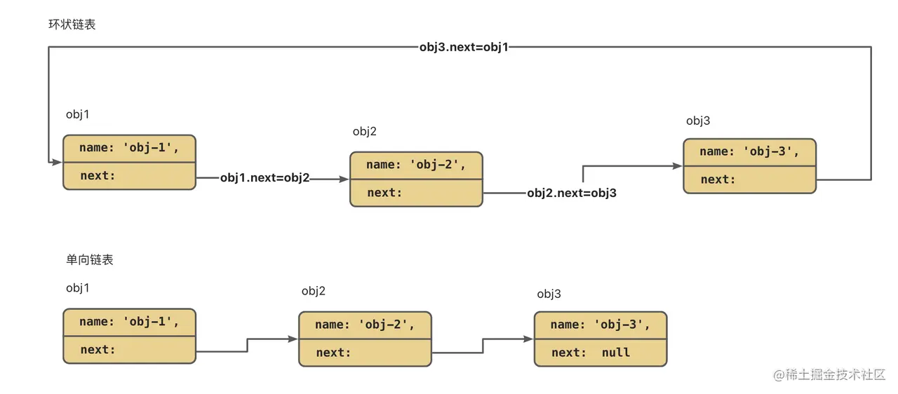 u1 -> u2 -> u3 -> u1,这是环状链表。