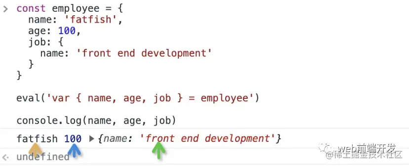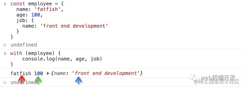console.log(name, age, job)1.2.3.4.5.6.7.8.9.10.