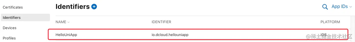 确认后选择提交,回到 identifiers 页面即可看到刚创建的App ID: