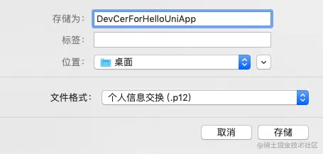 文件名称为“CertificateSigningRequest.certSigningRequest”,选择保存位置,点击 “存储” 将证书请求文件保存到指定路径下,后面申请开发(Development)证书和发布(Production)证书时需要用到