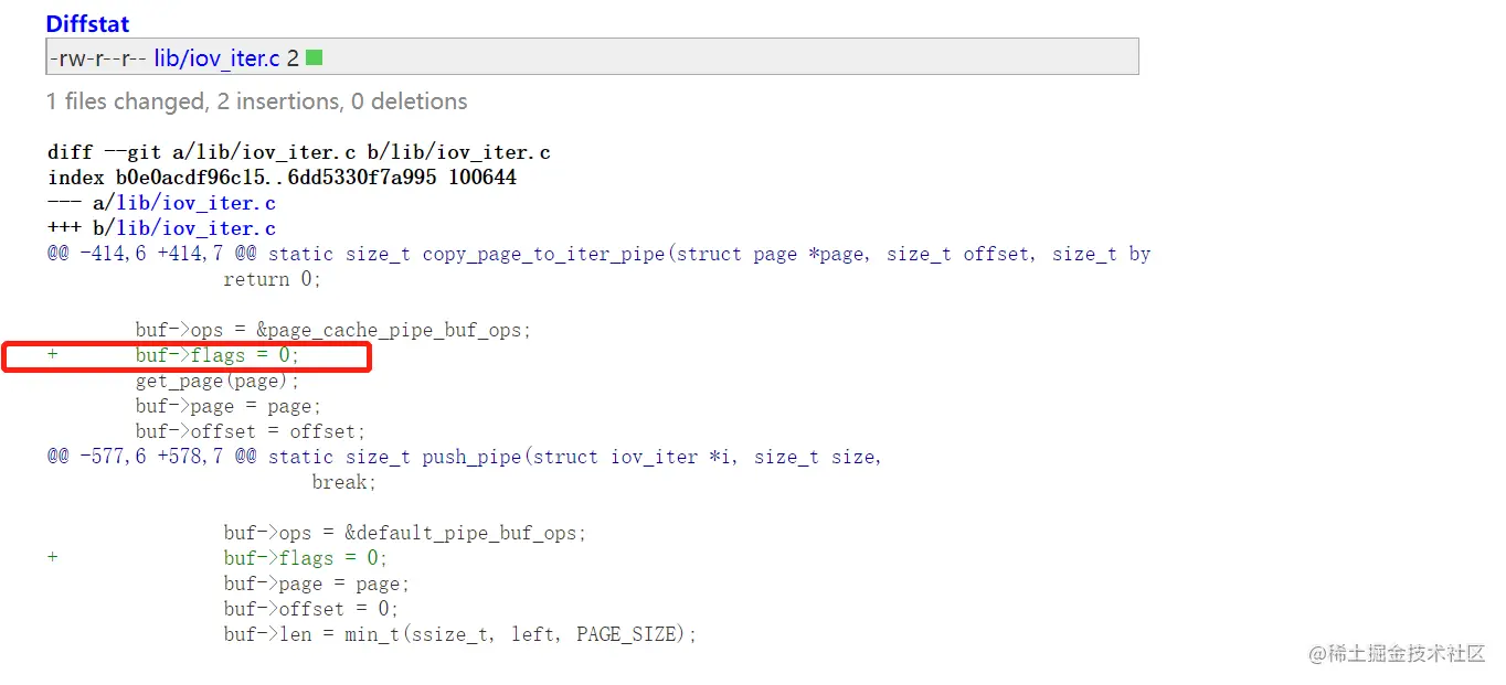 补丁页比较简单,在获取物理页的同时把管道缓冲区的标志位清空,就不会导致后面对管道进行写操作的时候进入合并数据流的流程