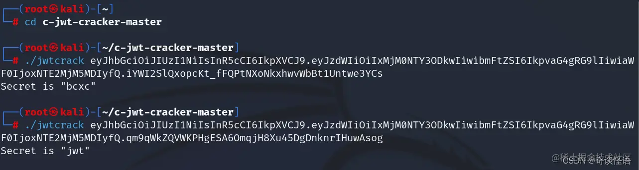 设置第一个JWT的密钥为bcxc,第二个JWT的密钥为jwt