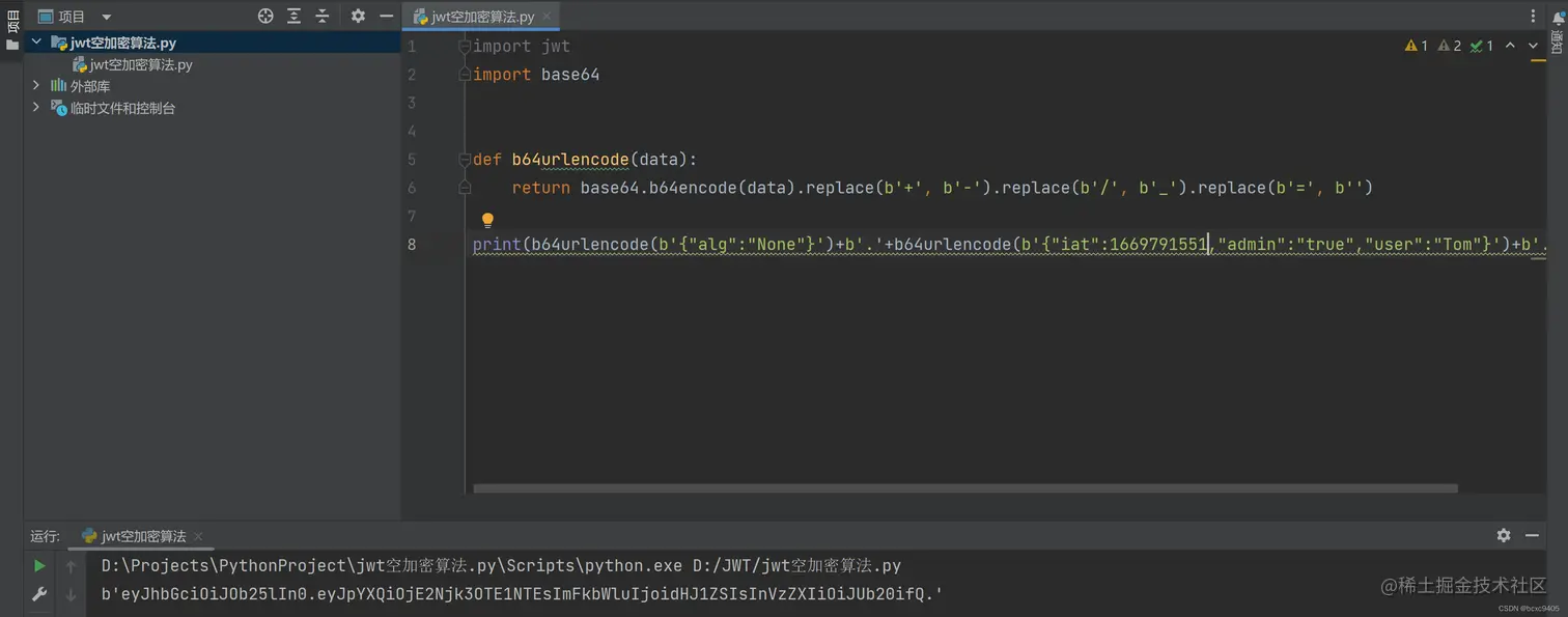 #前提:服务端允许使用"alg" : "None"(几乎不可能,一般只存在靶场中)