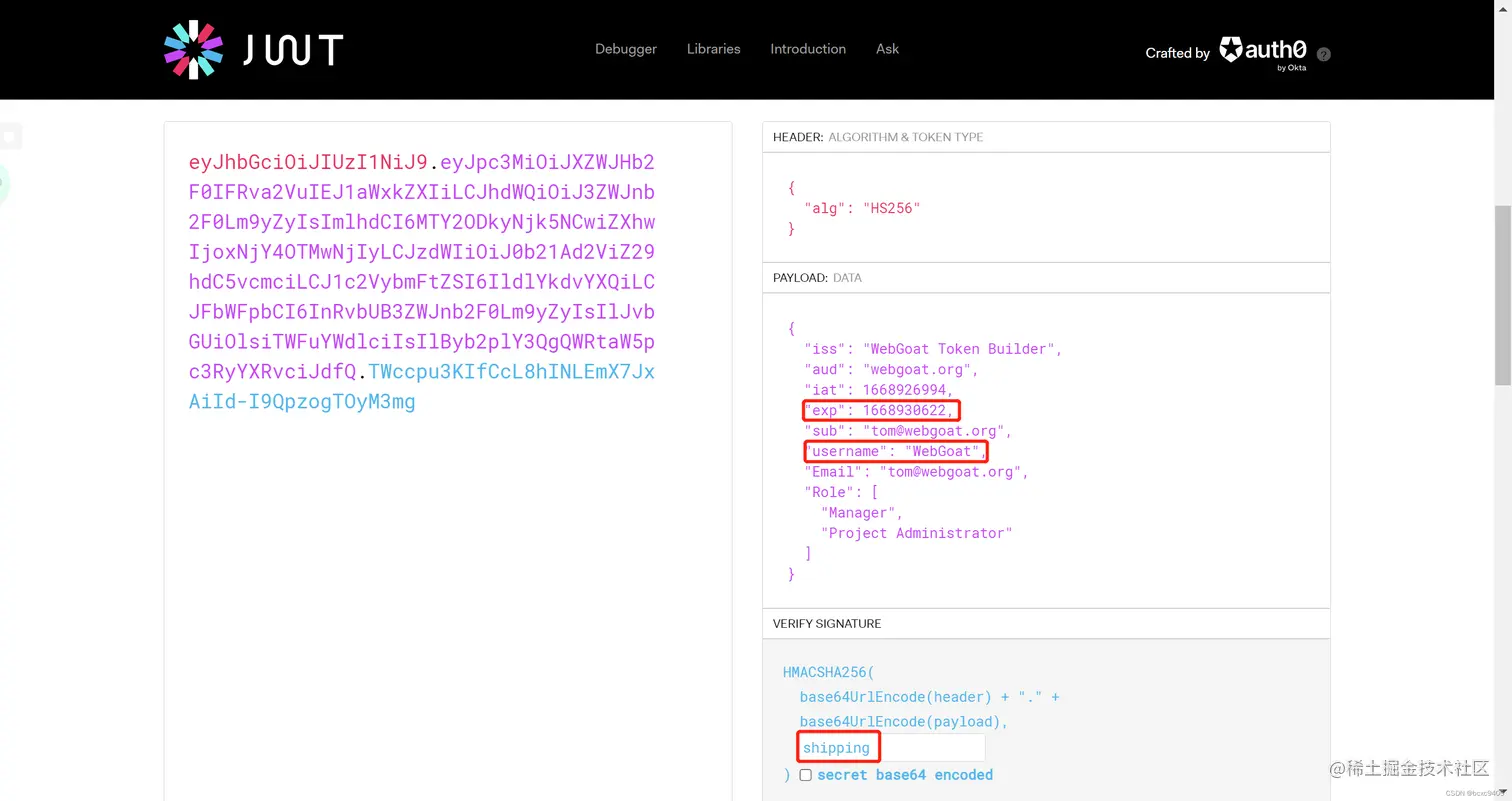 #注意点:本关卡还设置了有效时间,就是payload部分的exp,在最后提交的时候需要修改成当前时间