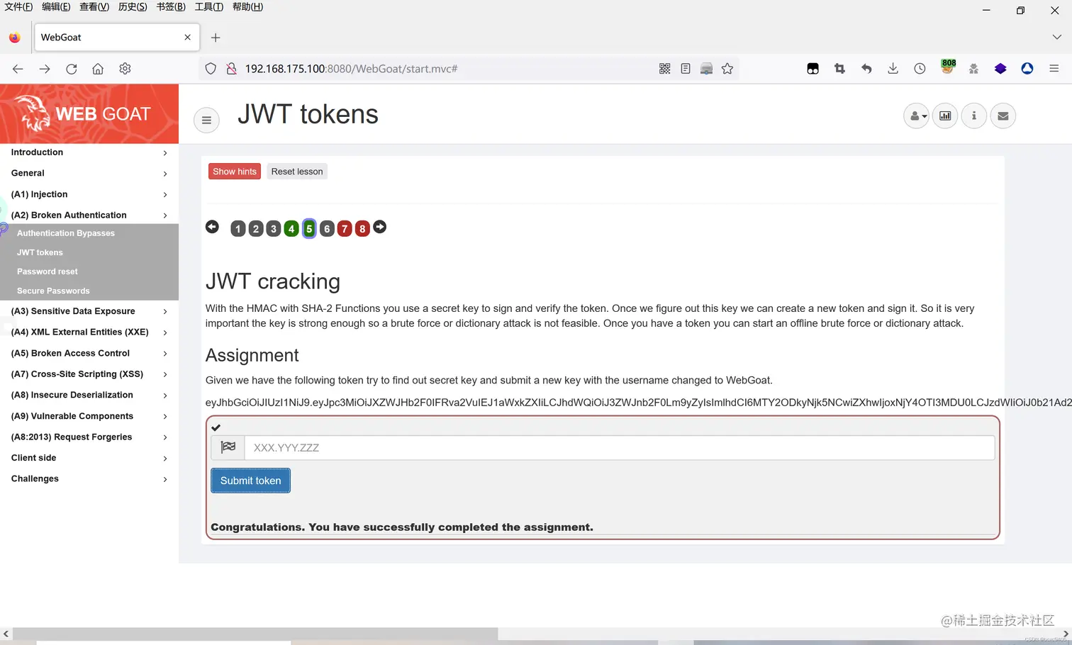将修改后得到JWT提交上去,成功过关