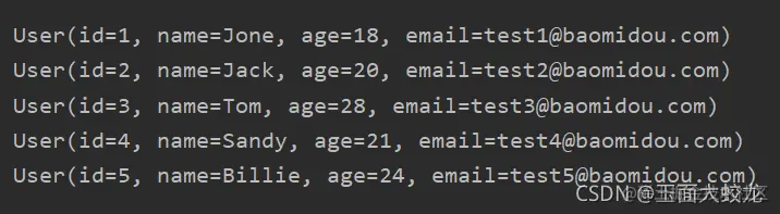 (5, 'Billie', 24, 'test5@baomidou.com');