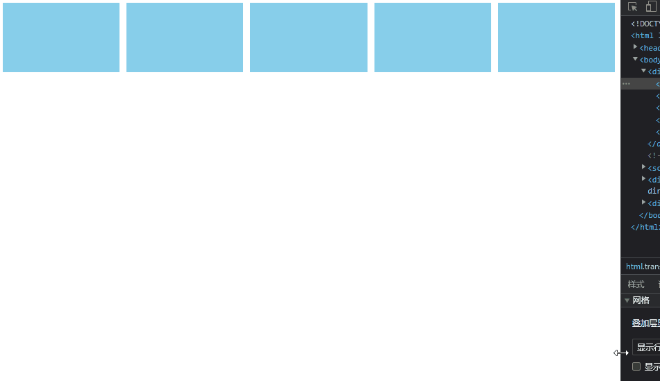 这时候使用 grid-auto-columns/rows 来控制溢出网格的列和行的宽高: