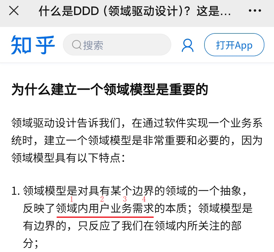 知乎上的这篇阅读量还比较大的DDD文章,先不说“领域模型……反映需求的本质”是错误的,就看这个累计叠加了三个前置词的“领域内用户业务需求的本质”就叹为观止了。