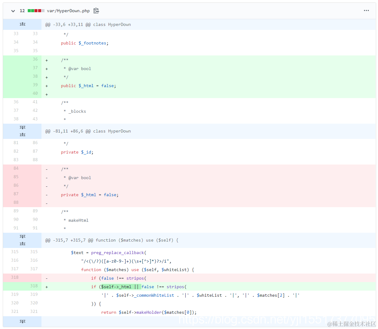 Typecho markdown无法解析html标签 时山屹 2022-12-29 126 阅读1分钟 版本 版本:稳定版1.1 (17.10.30) 稳定版存在此 bug,开发版已修复 修复 Bug 稳定版需要手动修改几个文件: 原项目链接 若希望支持解析 script,style 等标签,可以在此处(以及以下另一处)一同添加