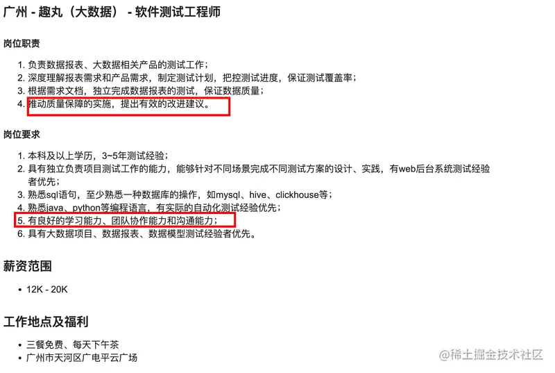 我们看到 JD 的时候,一定要多想一想,招聘需求上这么写倒底是需要什么样的能力?如何用测试开发的整个流程套起来呢?想明白这个问题之后,才可以有的放矢的去写简历,让你的简历脱颖而出非常有亮点