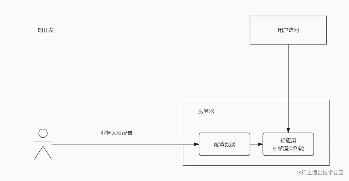对于“配置流”的一期建设如下图:配置人员直接在整个体系内进行配置功能,形成了业务功能的基础配置数据,通过各个引擎将配置数据渲染成功能。