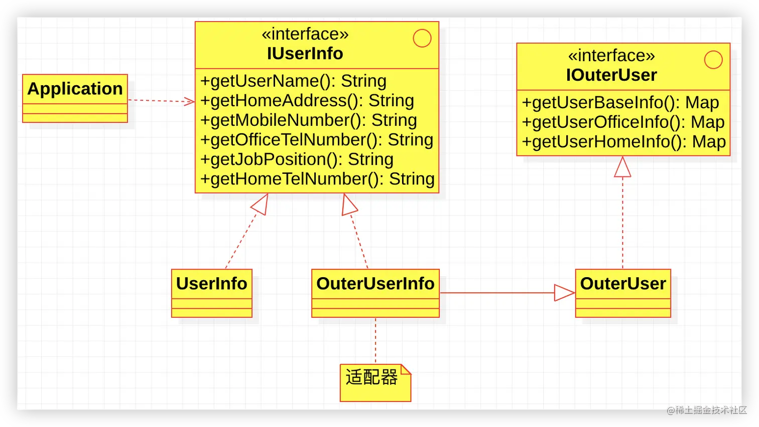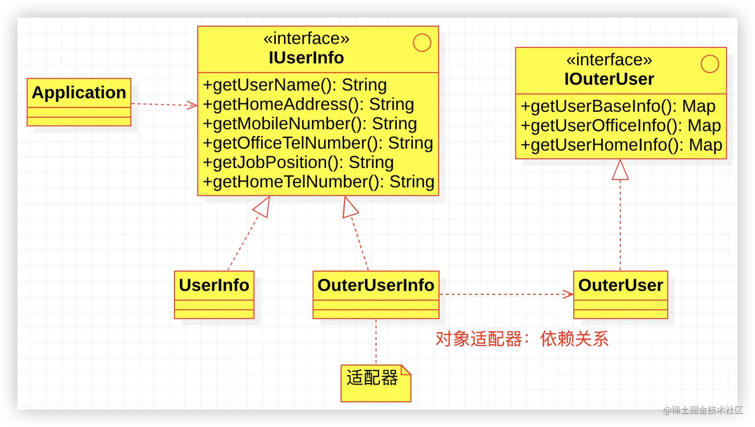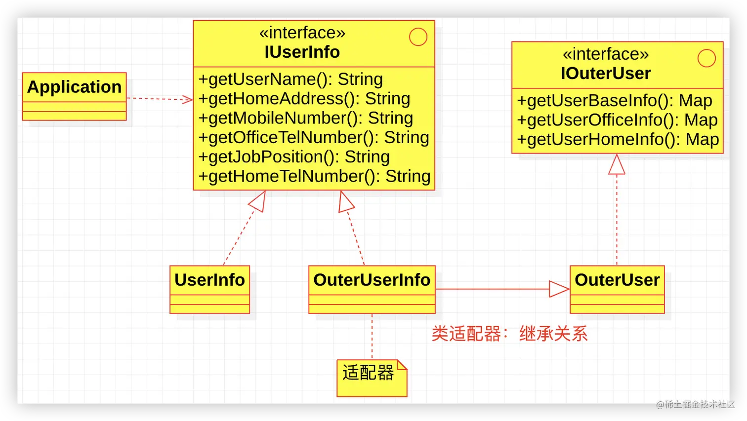- 不适合在系统设计阶段采用,没有一个系统分析师会在做详细设计的时候考虑使用适配器模式,这个模式使用的主要场景是在扩展应用中,就像本文的例子一样,当系统扩展了,不符合原有设计的时候才考虑通过适配器模式减少代码修改带来的风险。