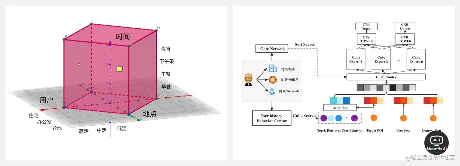 外卖场景具有很强的地理位置和就餐文化约束,用户在不同地点(如公司、住所)的需求有较大差异。而且,所处时间也是决定用户下单的一个关键因素。美团外卖推荐需要满足“用户 X 时间 X 地点”等情境下的需求总和,应对需求的不断拓展和演化。