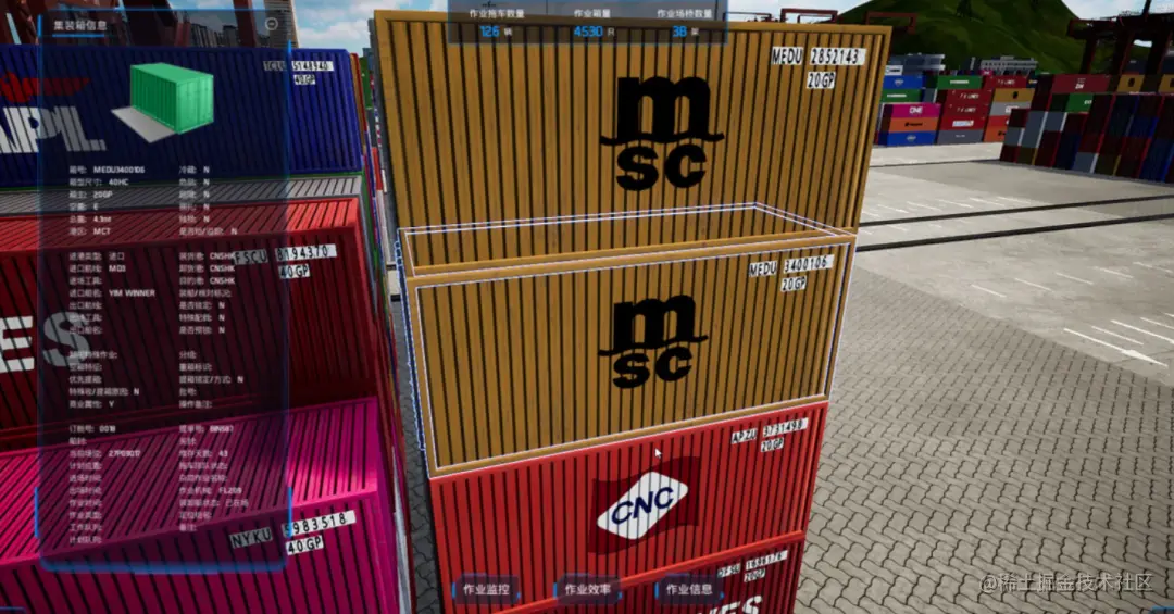 结合船舶、堆场、交通、气象以及物联网设备和摄像头等数据,通过三维可视化平台展示全要素的实时动态,可通过鼠标等交互控制方式,实现在仿真场景重点视角移动、旋转、缩放等操作,并支持对船舶、业务板块、具体码头公司的信息查看,可以帮助调度指挥的人员准确、实时、全面监测和掌握全港生产作业信息。
