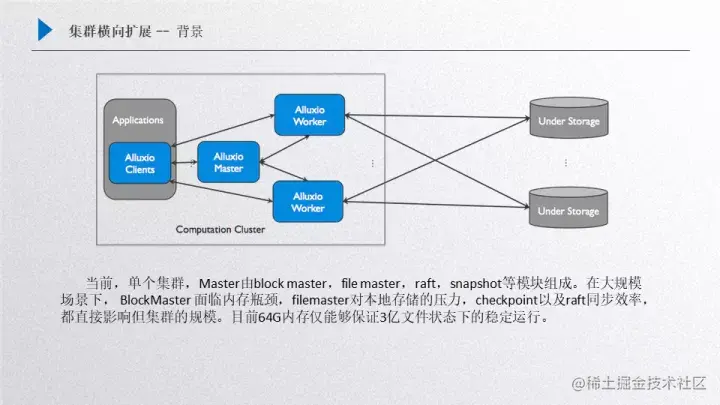 以下是分享的核心内容:总共分为3个部分,也就是Alluxio引入蚂蚁集团之后,我们主要从以下三个方面进行了性能优化:第一部分是稳定性建设、 第二部分是性能优化、第三部分是规模提升。