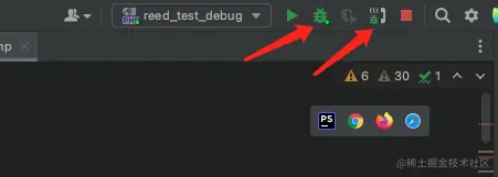 - 打开监听(最右边那个小电话),然后开启调试(左边那个小虫子)。