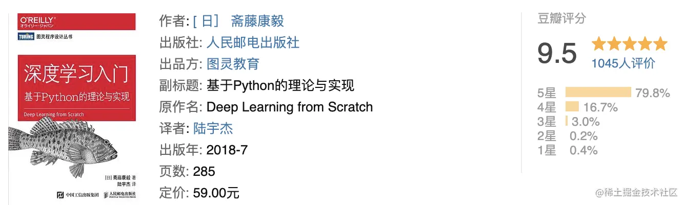 书名是深度学习入门,事实上对于小白是真的友好,豆瓣9.5分可以完全说明。