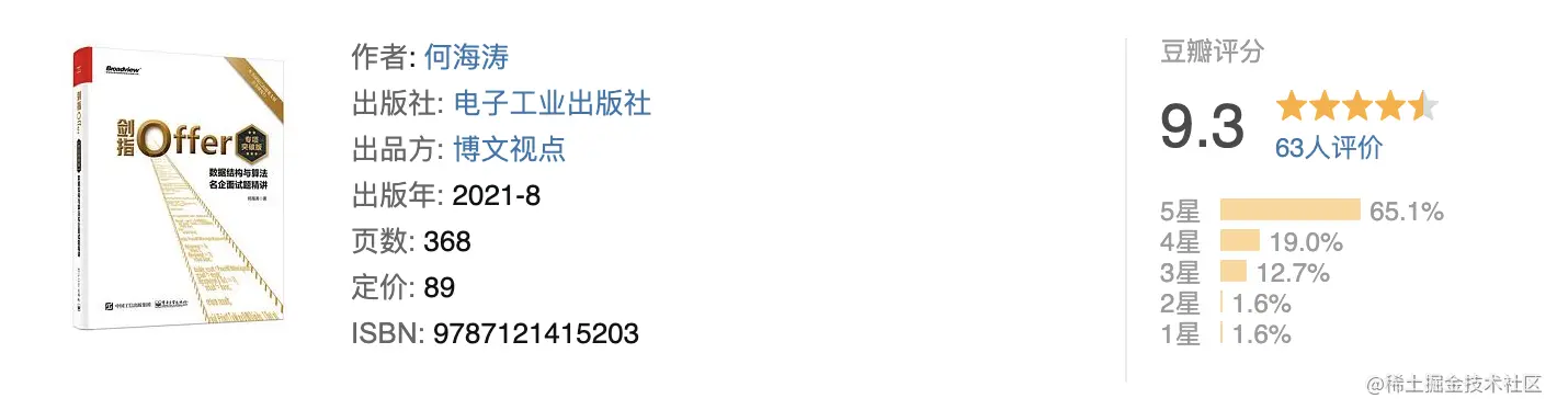 第一本:《剑指 offer》,豆瓣9.3分