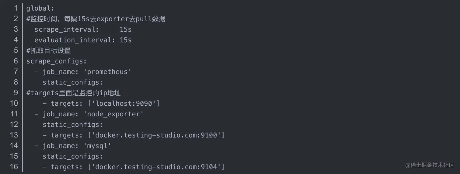 4.在prometheus.yml的配置文件中添加mysql的配置,并docker restart prometheus ,重新加载prometheus的配置(可以参考上面的步骤2)