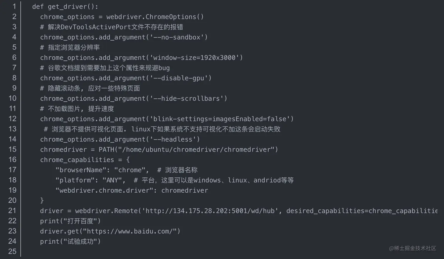 注意:如果服务器系统不支持可视化不加这条会启动失败chrome_options.add_argument('--headless')