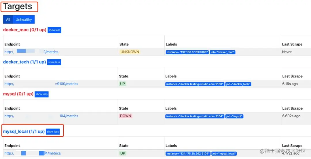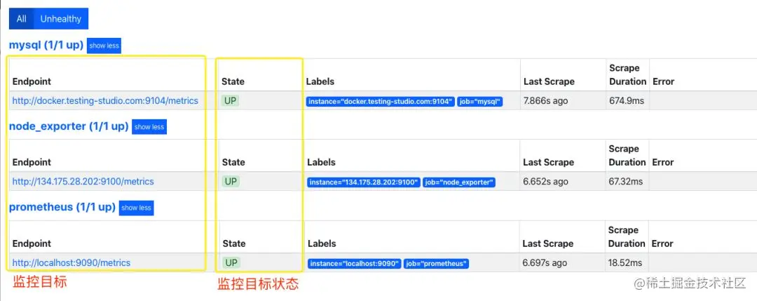 5.进入prometheus页面,查看Targets中mysql是否启动成功