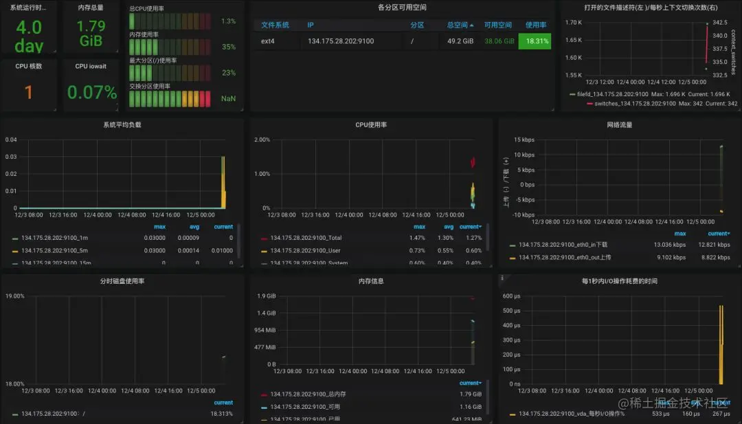 使用Docker搭建prometheus+grafana的服务器监控。让你的服务器监控页面有颜有料且让人一目了然。让数据分析不再局限于数字和曲线图,能够多方位进行对比。
