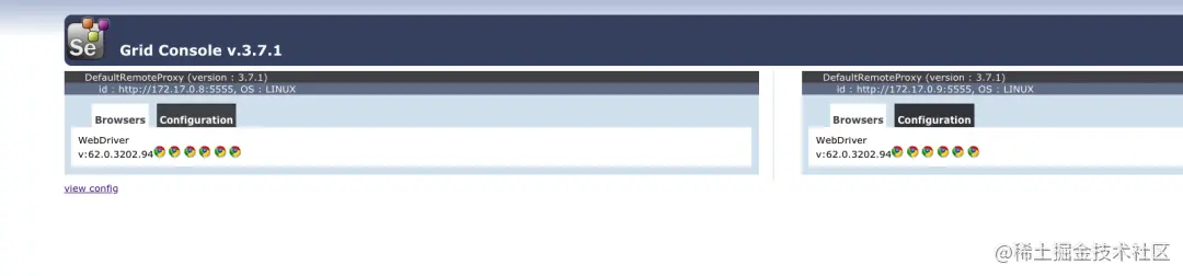 如果想启动多个Node,可以重新修改一下端口映射比如,将5902:5900修改为5903:5900这时候我们就可以发现图片中又显示了一个Node信息。