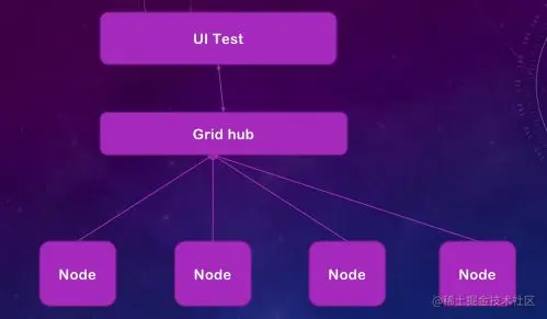 UITest层会将测试请求发送到GridHub层,而GridHub则会将这些测试请求转换为测试任务下发到每一个Node节点(在每台机器上面我们可以装一个或多个Node节点。),随后Node节点驱动浏览器进行自动化测试。测试完成后,Node节点将测试结果发送到GridHub上面,GridHub再将结果转发回我们的测试程序UITest中