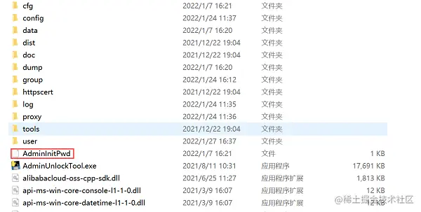 初始管理员密码:启动服务后,在服务器解压文件夹的AdminInitPwd,查看管理员密码