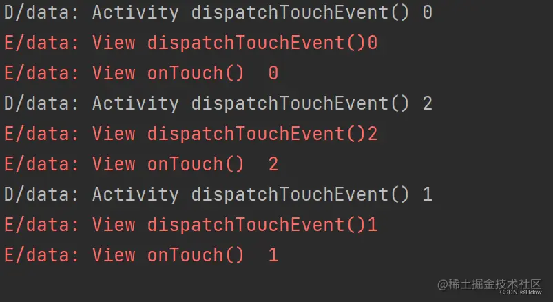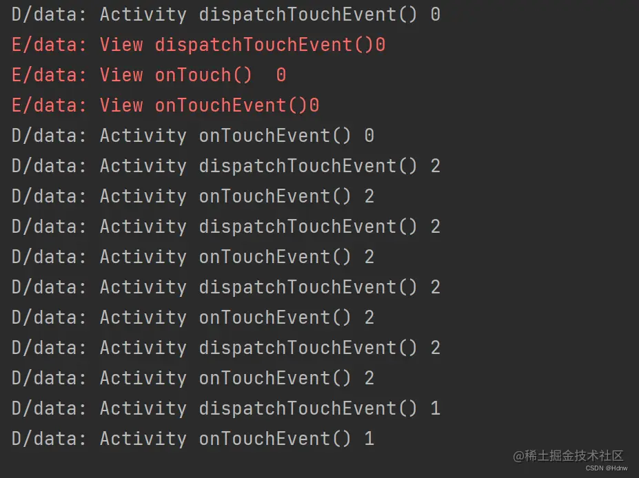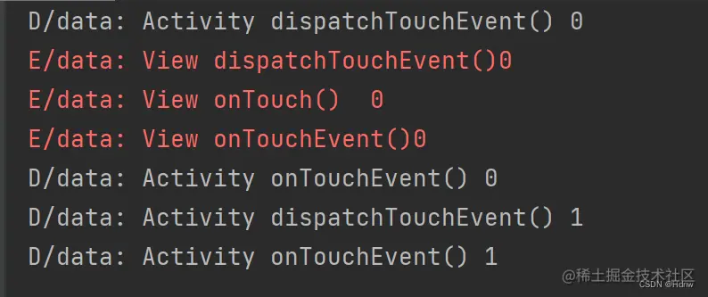 最终都是View消费了点击事件, 并且可以看出OnTouchListener中的onTouch()事件优先级高于onTouchEvent()事件,如果onTocuh()的返回结果为ture,那么该View的onTouchEvent()事件将不会被调用。