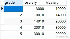 CREATE TABLE salarygrade ( grade INT PRIMARY KEY,