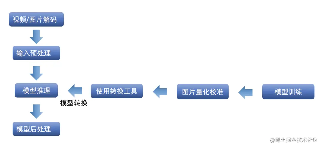 完成模型的训练后,我们开始进行部署,主要包括模型转换、模型量化、模型与平台适配等工作。