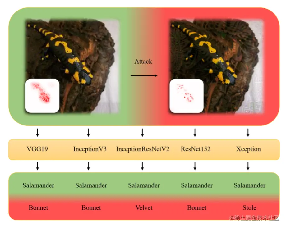 在图像分类中,可以看到对抗攻击算法攻击普通图片从而生成的对抗样本,会让目前主流的分类器出现明显的误分类,而图像分类算法是AI项目最基础的基石。
