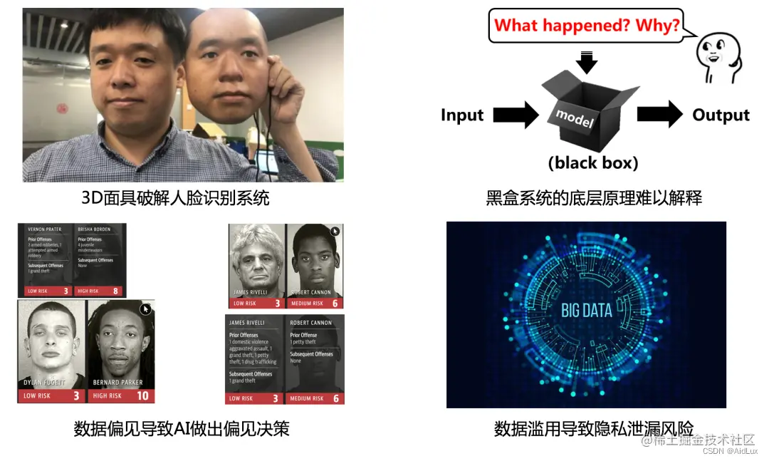 比如上图中表示美国芝加哥法院使用的犯罪风险评估系统被证明,对黑人会做出偏见决策。