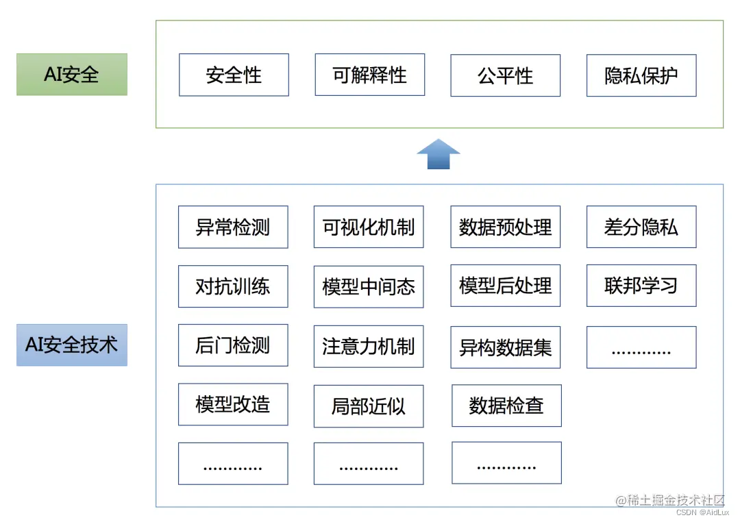 前面讲了AI安全的风险,那么如何克服这些风险呢?这里就涉及到AI安全技术了。