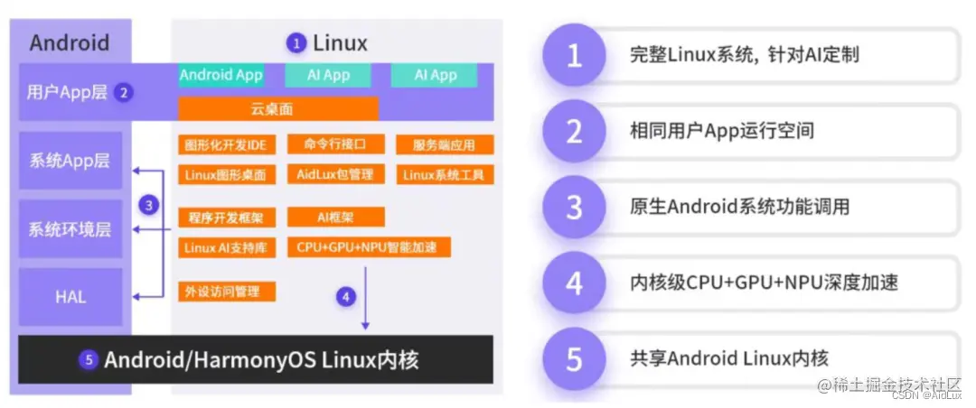 而Linux底层也是ARM架构,并且Android又是基于Linux内核开发的操作系统,两者可以共享Linux内核。
