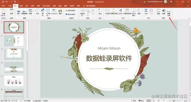 PPT演示文稿除了可以展示文字、图片外,也是可以录制屏幕的;那PPT如何录制电脑屏幕视频?在电脑打开一份PPT文件,然后点击“插入”功能,并在“插入”下方的栏目中按下“屏幕录制”键,即可开始录制屏幕;