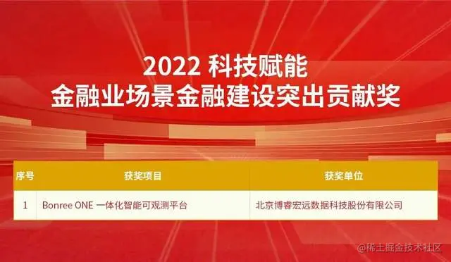 本次获得“2022 科技赋能金融业场景金融建设突出贡献奖”,是业界对Bonree ONE给金融领域带来的核心价值和创新成果的认可。作为中国领先的IT运维智能可观测平台,Bonree ONE专注于构建以用户为中心的简捷、高效、智能的新型IT运维,以提升企业运维效率为起点,驱动业务创新增长,助力企业提升核心竞争力,抢占数字经济先机。