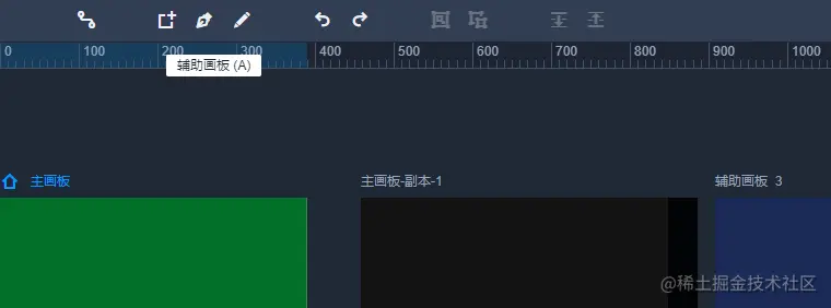 通过顶部菜单栏的「辅助画板」创建以一个和主画板同等大小辅助画板,并在辅助画板上完成惊喜开启后的页面设计。