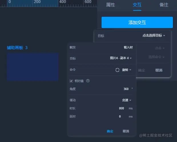 小摹选择的旋转,调整旋转角度和速度,即完成交互设置。