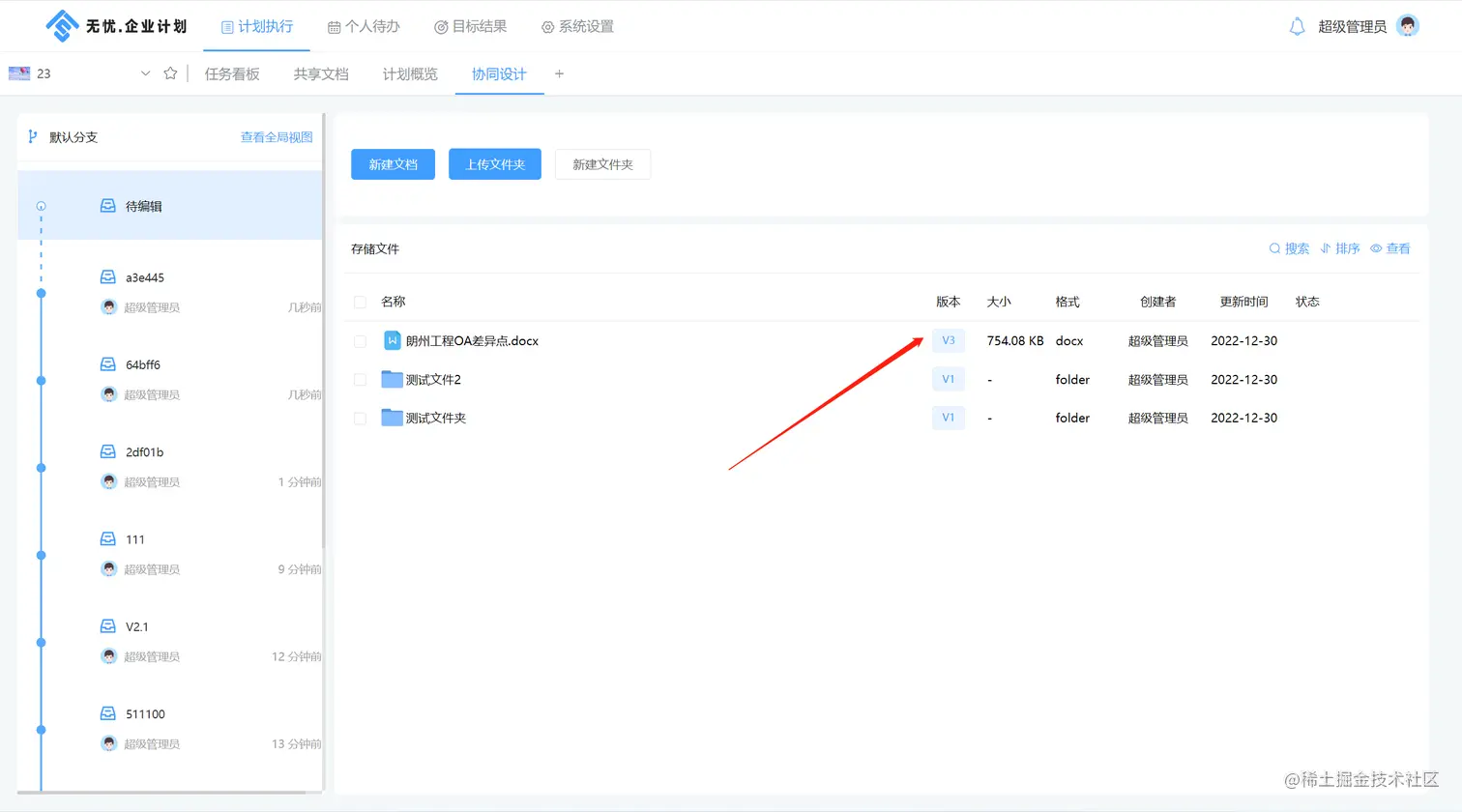 对文件变化支持自动版本记录,对多个文档记录当前有效版本,对历史任何存档进行统一记录
