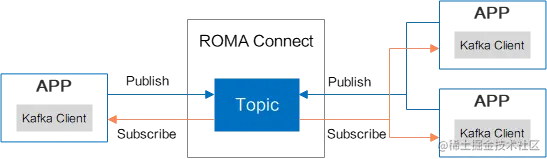 例如企业与合作伙伴使用的消息系统不一样,消息系统对接成本较高,而且难以保证对接之后消息传输的可靠性和安全性。企业之间可以约定使用Kafka通信协议,那么MQS可以作为消息中转站,提供安全、可靠的消息传输通道。企业创建多个topic,设置每个合作伙伴订阅topic的权限,然后将消息发布到多个topic中。合作伙伴通过订阅topic,获取topic内的消息。
