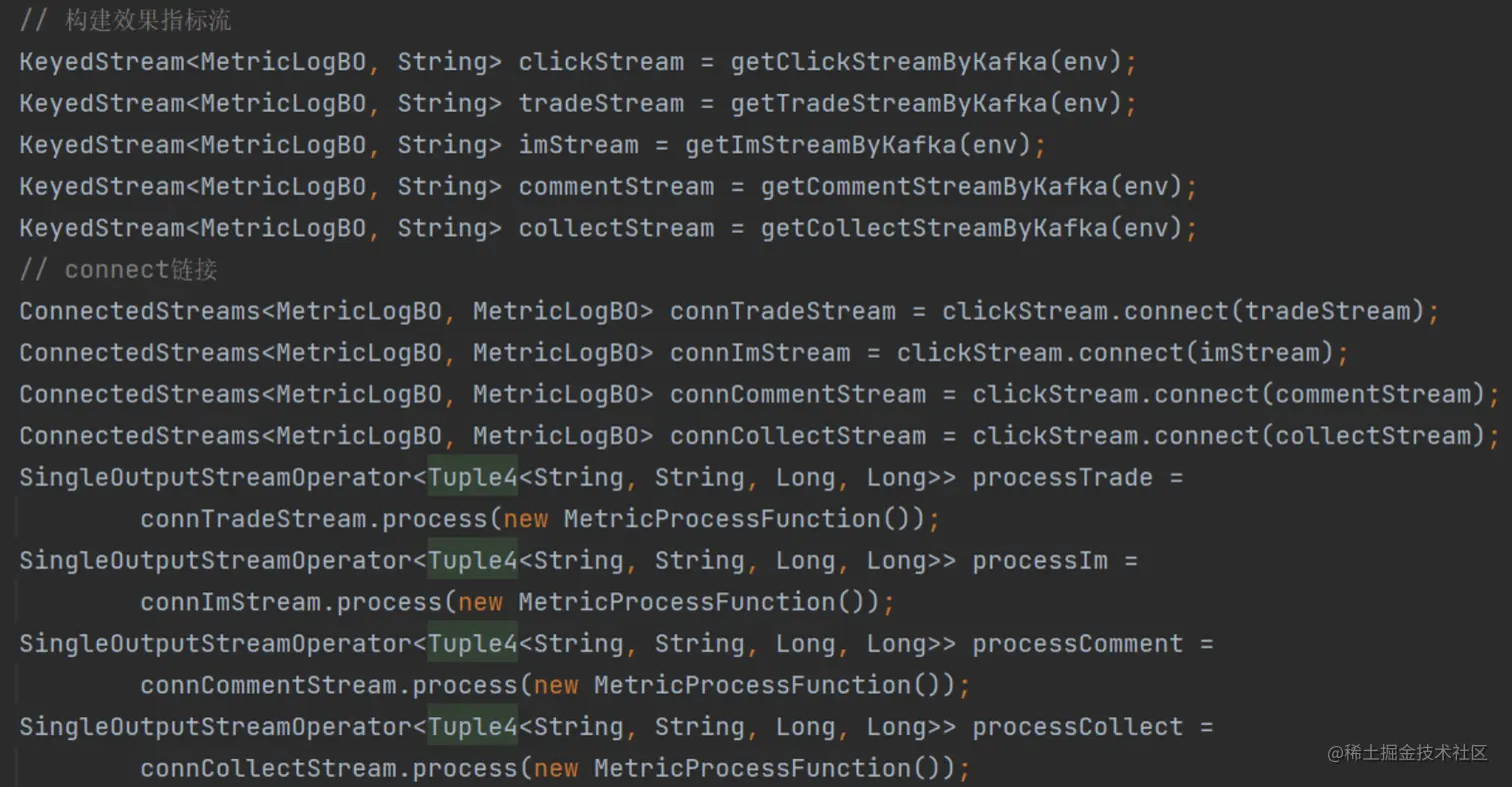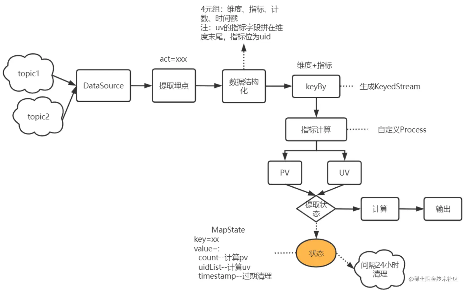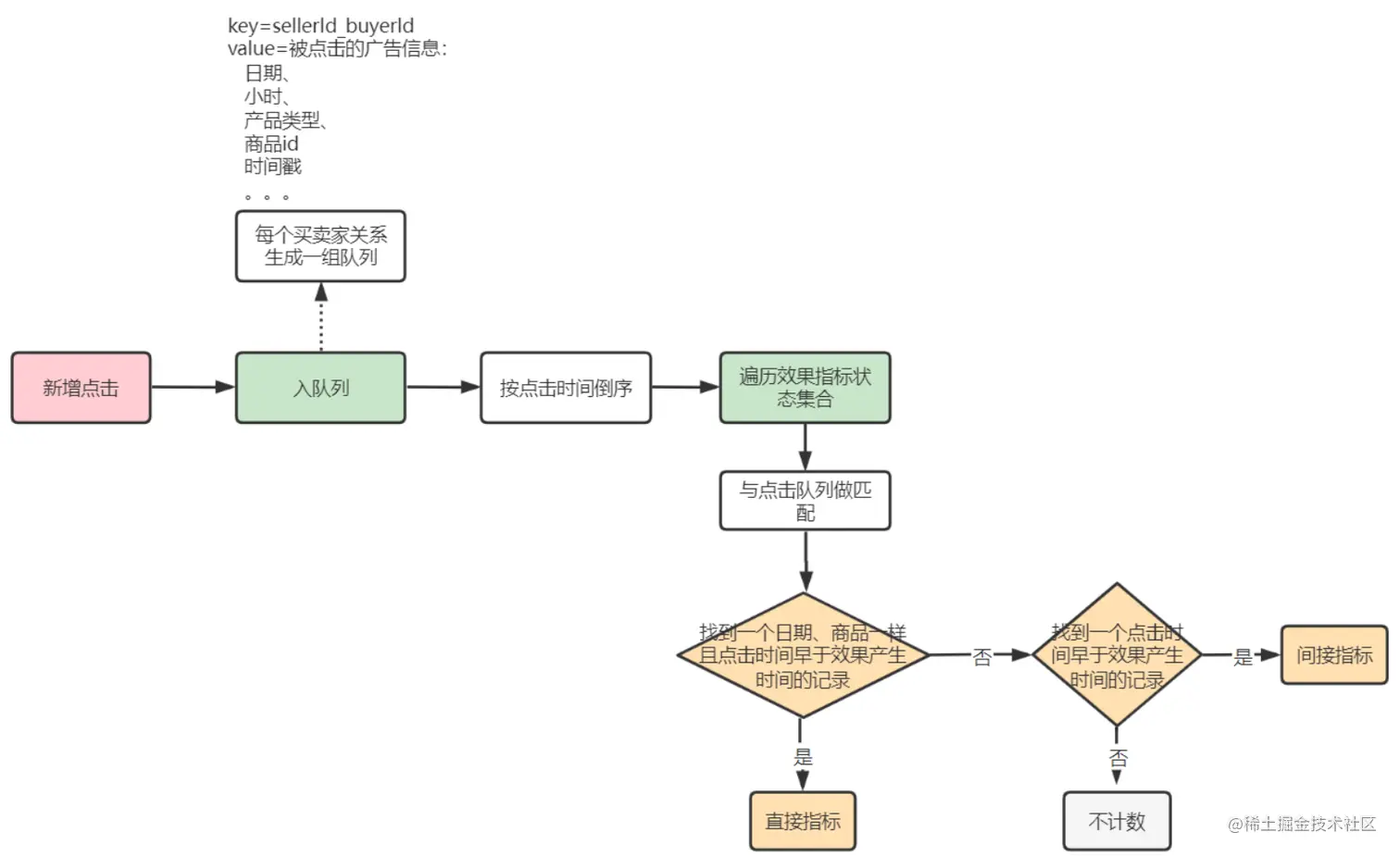 2)效果指标和点击数据源做流合并,合并后在一个流内共享state,以便于做运算