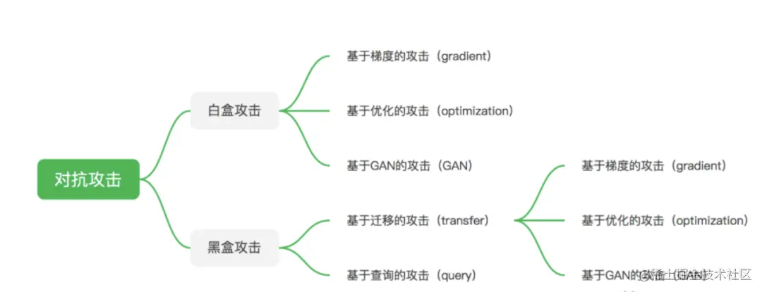 上面我们了解了对抗攻击对AI项目带来的安全风险与场景应用,接下来我们再了解一下目前主流对抗攻击算法的总体分支与逻辑:
