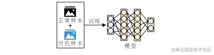 使用对抗样本在模型训练过程中进行对抗训练,我们在训练时将对抗样本加入训练集一起训练,即为对抗训练。