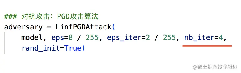 由于实际中攻击一般不会在端侧进行,于是将代码中的攻击算法参数进行修改: