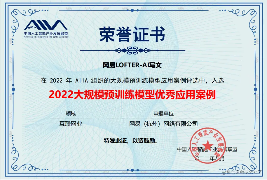 在今年由中国信息通信研究院、人工智能关键技术和应用评测工业和信息化部重点实验室等机构共同发起的 2022 可信 AI 峰会上,组委会公布了“2022 大模型优秀应用案例”名单,网易伏羲实验室「 LOFTER-AI 写文」和「傀儡戏-互动式文字游戏」同时入选“2022 大规模预训练模型优秀应用案例”,在大模型技术及 AI 实践领域再获行业认可,充分展现了网易游戏在人工智能领域的综合技术实力。
